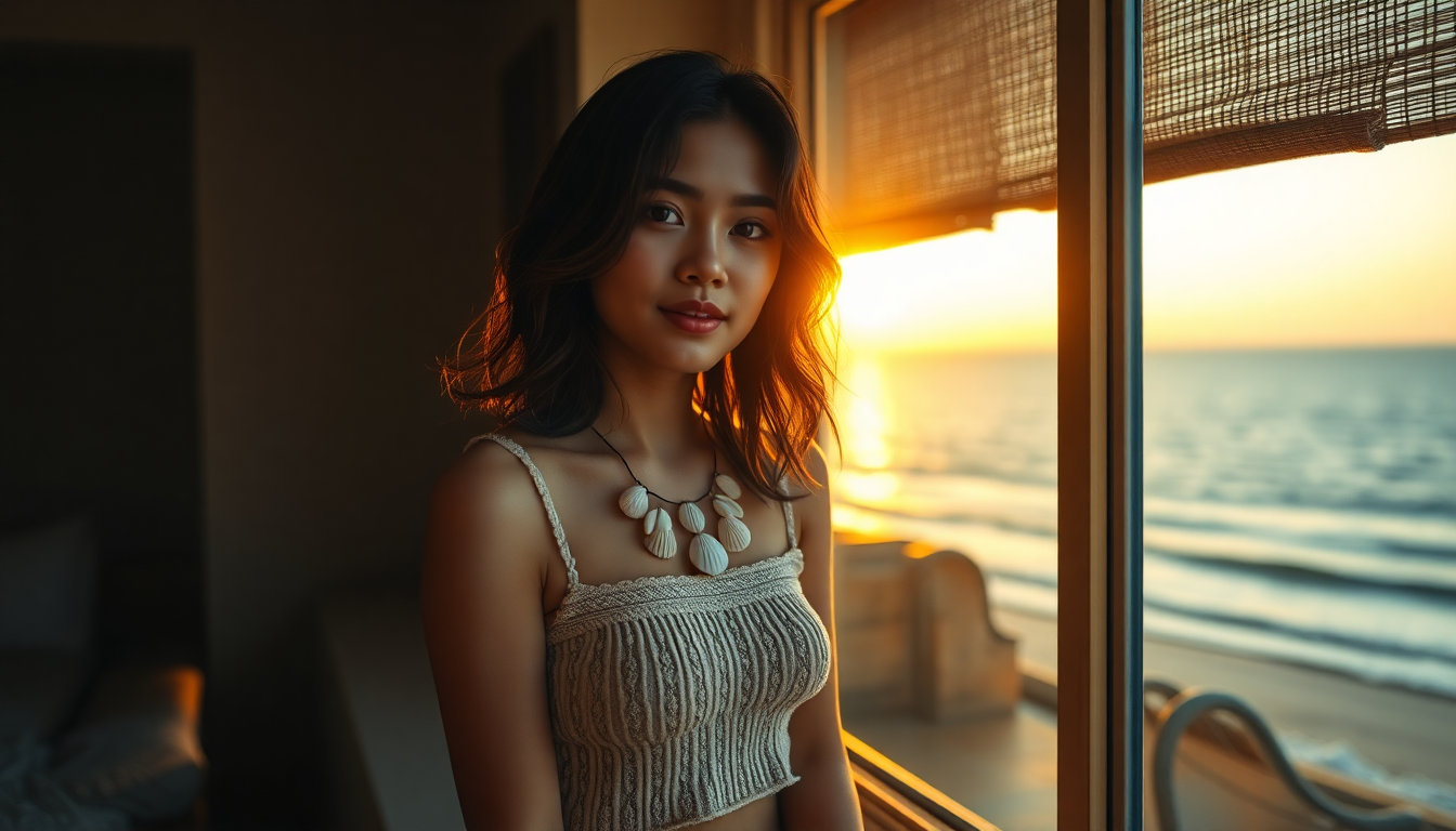 The soft glow of the setting sun filtered through the heavy drapes of a secluded…