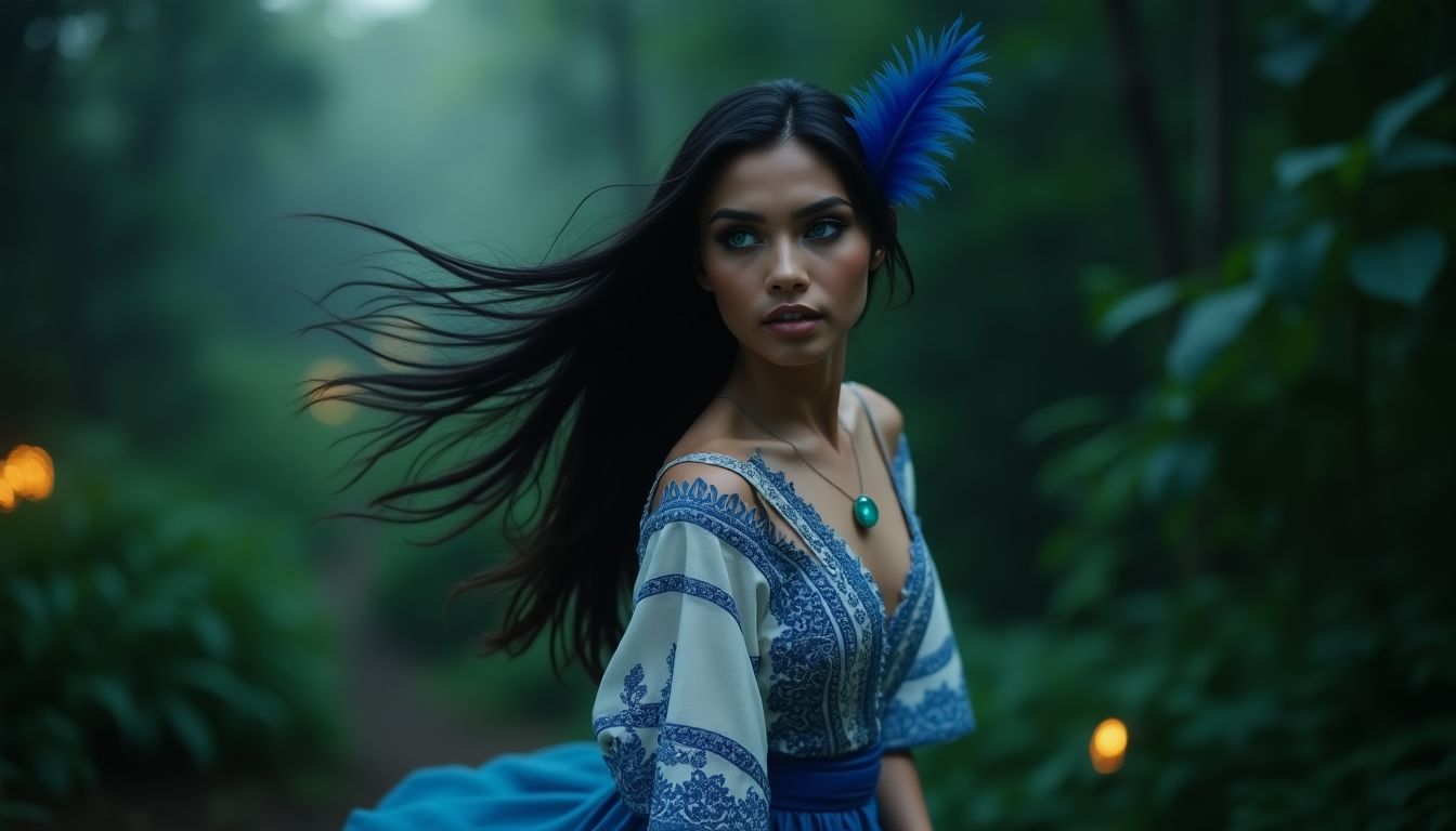 She ran through the dense thicket, her bare feet barely making a sound against the…