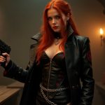 She swung her legs over the side of the bed, her bare feet settling onto the cold hardwood floor. The contrast of the chilly surface against her warm skin heightened the tension in her body. The sheer lace of her lingerie shifted with her movements, as though it, too, was alive and aware of the danger around them.