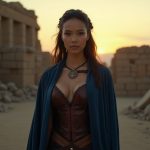 The chamber door slid open with a silent whoosh, revealing the Council of Elders gathered around a radiant holographic table. She could feel their eyes on her, weighing her presence, her outfit—a blend of history and future, tradition and rebellion. A flash of uncertainty flickered within, but she quelled it with the power of her stance. She had learned well from the echoes of her ancestors; every person who had ever stood in their shoes bore the weight of their choices. And today, she would make the ultimate choice.