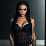 She was breathtaking—a vision of both resilience and grace. Her long, sun-kissed hair cascaded in soft waves over her shoulders, framing a face that was equally fierce and serene. Her large, almond-shaped eyes reflected the interplay of ocean and sky, glimmering in shades of cobalt and aquamarine. The faintest trace of a knowing smile played at her full lips, their natural curve betraying untold stories.