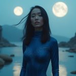 Amidst the echoes of an abandoned city, Eleanor weaved through the remnants of what was once a vibrant society in 2587. Buildings, monolithic in their sheer decay, stood like tombstones in a graveyard of progress. Once furnished with the flickering lights of everyday life, they now lay covered in layers of ashen dust and sprawling vines, nature’s slow reclamation of human endeavor. Eleanor, a striking figure, wore a fitted black tunic with intricately woven designs that shimmered like starlight against her skin. Her outfit, though futuristic, held vestiges of ancient elegance, reminiscent of bygone eras—archaeological replicas crafted with threads that absorbed both light and memory.