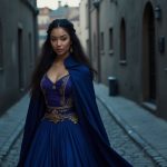 The storm broke over the Caribbean like a wild orchestra, rain slapping the tiled balcony and casting the sea into a churning frenzy. A lone figure stood against the chaos—tall, lean, and poised like a jaguar ready to pounce. Her bronzed skin glistened with rain, her black halter-style bikini replaced in this tale’s era with a black silk bodice laced over rich skirts embroidered with silver threads, the fabric clinging to her toned figure. Her dark hair was damp, cascading in loose curls that framed her sharp cheekbones and defiant eyes.