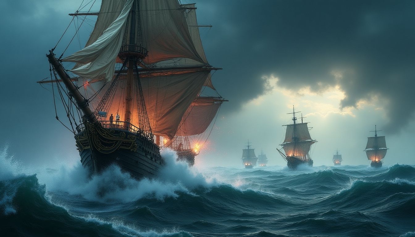 The scream had barely left her lips when the first arrow struck the mast. Splinters rained down as Shayana clung to the edge of the swaying caravel, her sapphire-blue dress whipping in the raging sea wind. The ship rocked violently, caught between the relentless pursuit of enemy sails and the churning rage of the Atlantic storm. Around her, cries of men filled the air—commands, prayers, and the wails of the wounded.