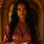 Running, she tightened the thin silk scarf around her neck—pink like the gauze of her outfit—fighting to block out the stench of smoke and the cries. The scarf was all that remained from a mother whose face she could no longer recall. Sahira could hear the hiss of arrows slicing the air behind her, some striking sand at her heels. She paused briefly behind the jagged spine of stone in the dunes to realign her thoughts. Two soldiers pursued her—armed, armored, impenetrable. She reached for a blade of her own but groaned at the sight; within her silk sleeves, she tucked nothing more than a ceremonial dagger. It was barely longer than her palm, ornate in its ivory hilt and utterly useless against trained killers.